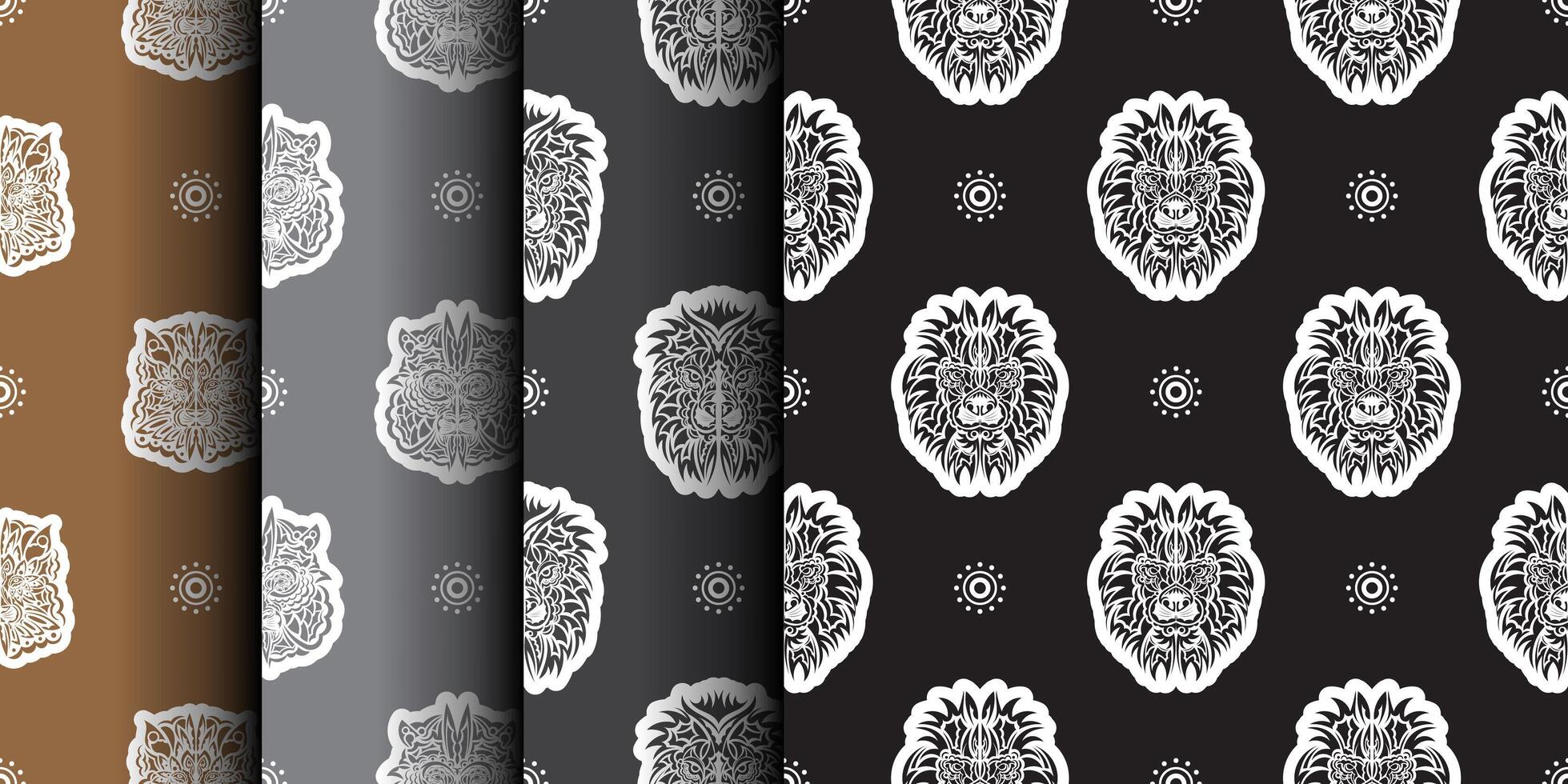 conjunto de patrones sin fisuras con la cabeza de un león en un estilo sencillo. bueno para fondos e impresiones. vector Vector Pro