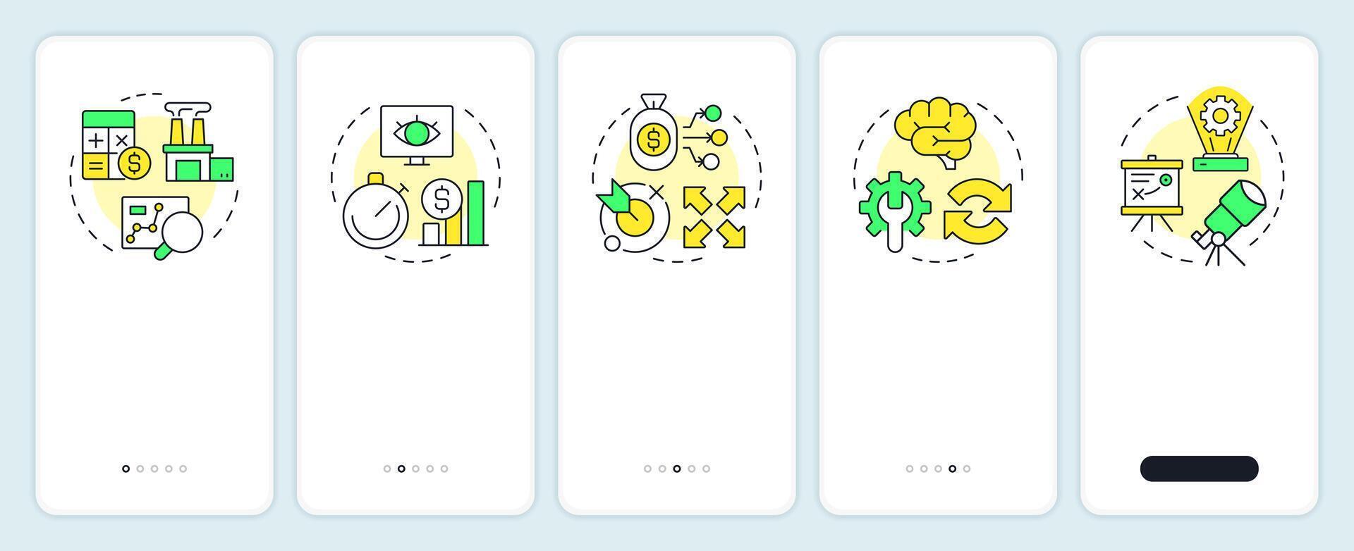 pasos en capacidad administración procesos inducción móvil aplicación pantalla. recorrido 5 5 pasos editable gráfico instrucciones con lineal conceptos. ui, ux, gui Vector Pro