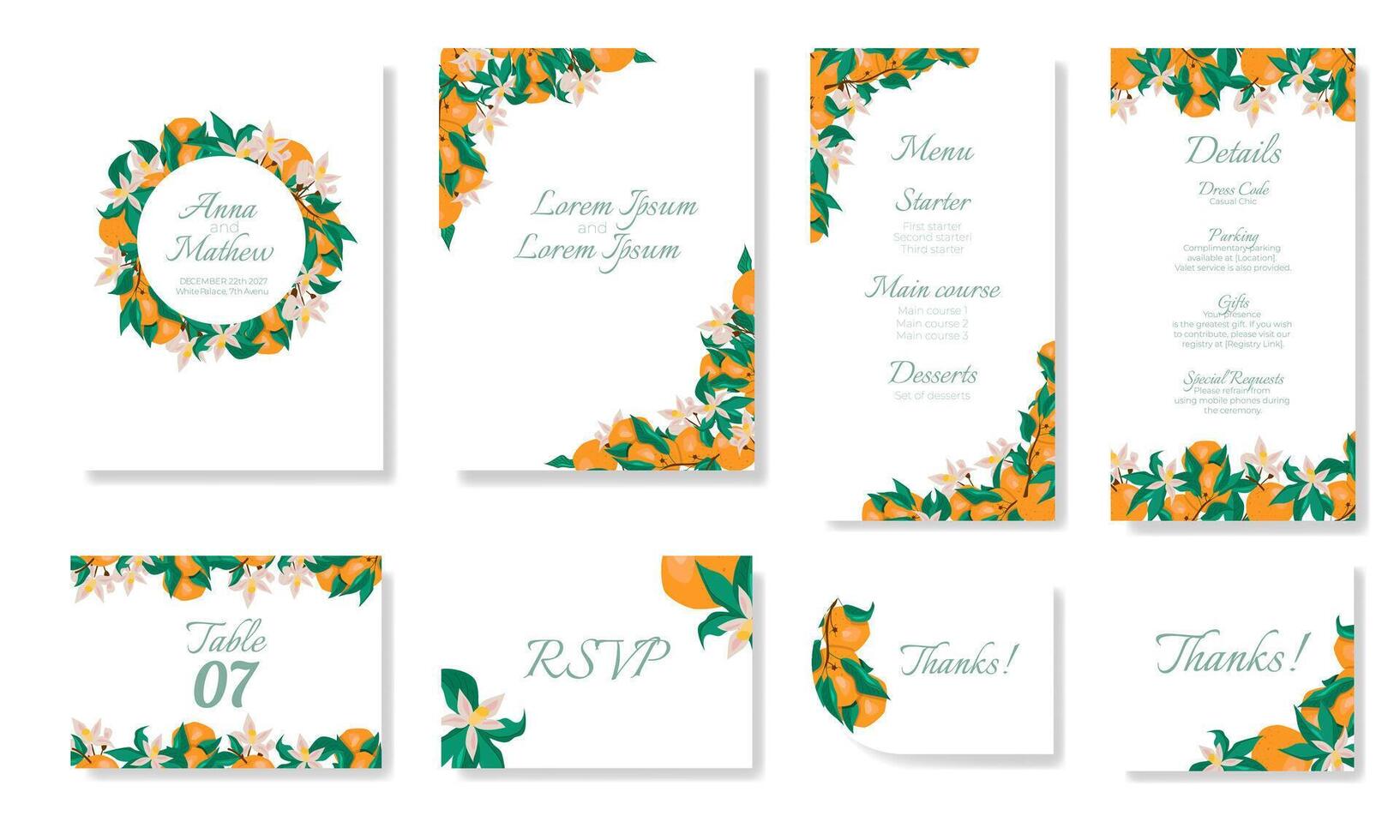 naranja Boda invitación modelo con floral guirnalda Vector Pro