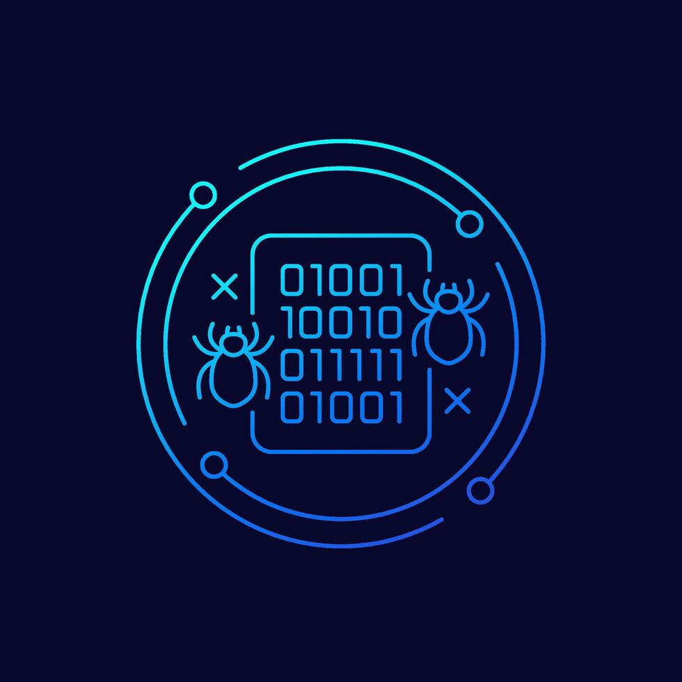 computadora insectos, software pruebas icono, lineal diseño Vector Pro
