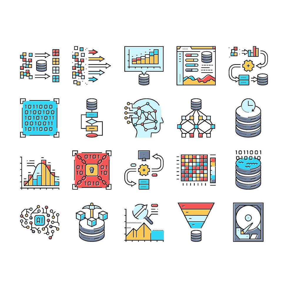 grande datos analítica hadoop íconos conjunto objeto Vector Pro