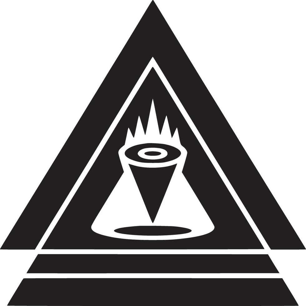 un gráfico ilustración de un negro triángulo con un cono conformado objeto en el medio con llamas encima Vector Pro