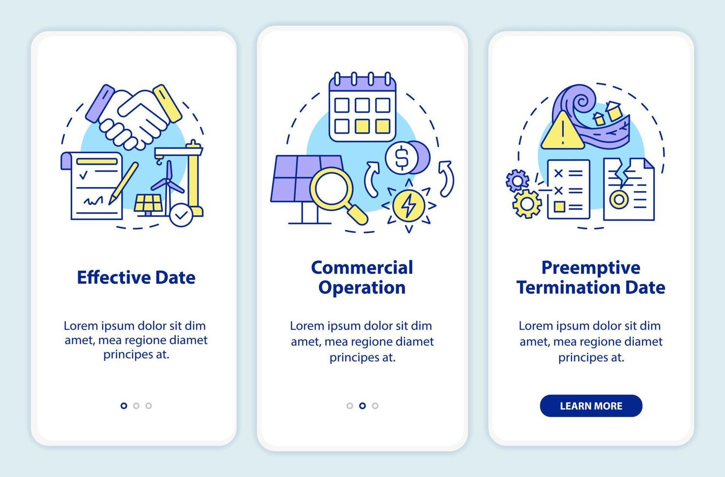 línea de tiempo del contrato de la pantalla de la aplicación móvil de incorporación de ppa Vector Pro