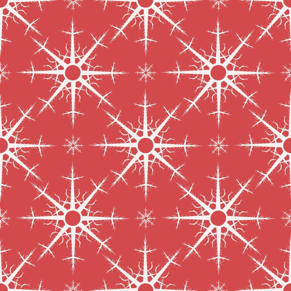 patrón impecable con copos de nieve blancos creativos sobre fondo rojo. imagen vectorial Vector Pro