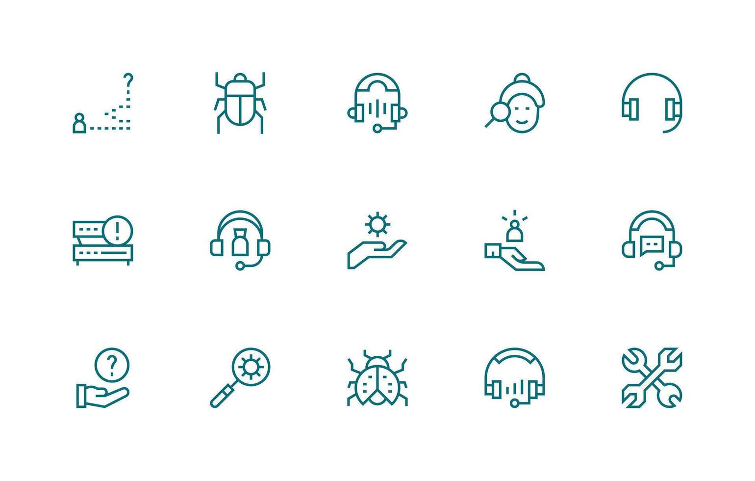 técnico apoyo conjunto con 15 regular línea íconos vector