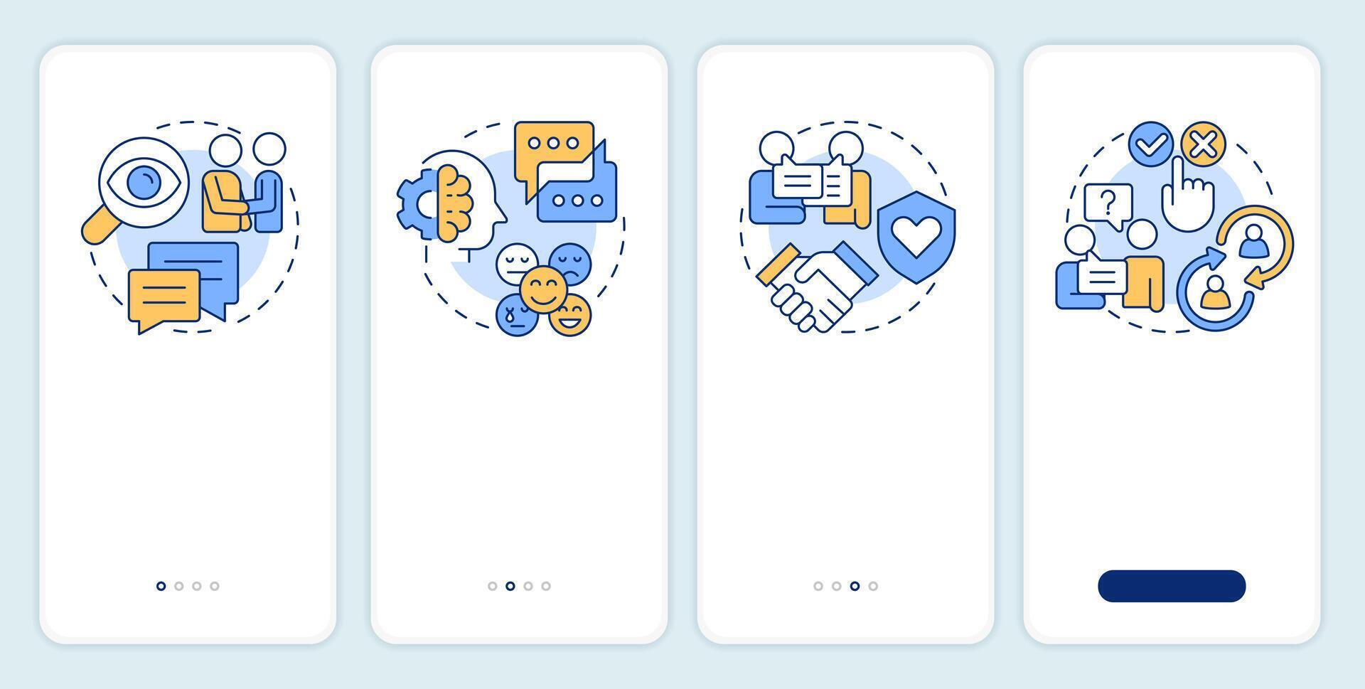 no violento comunicación inducción móvil aplicación pantalla. social redes. recorrido 4 4 pasos editable gráfico instrucciones con lineal conceptos. ui, ux, gui Vector Pro