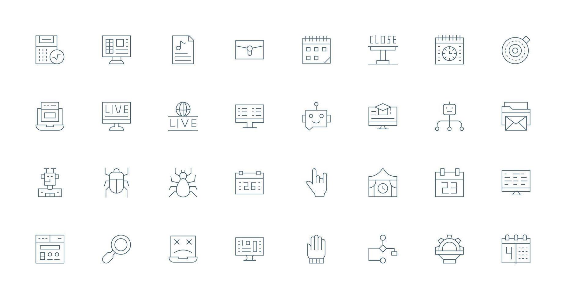 programa conjunto con 32 Delgado línea íconos icono conjunto para web vector
