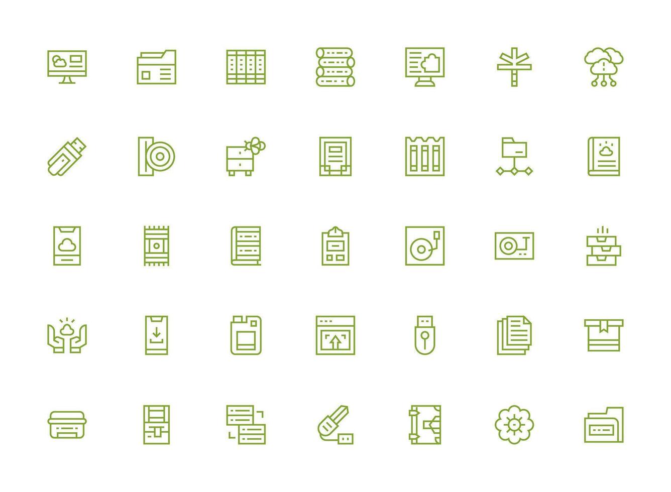 datos almacenamiento presentando 35 íconos en regular limpiar línea diseño flexible icono sistema para web interfaces vector