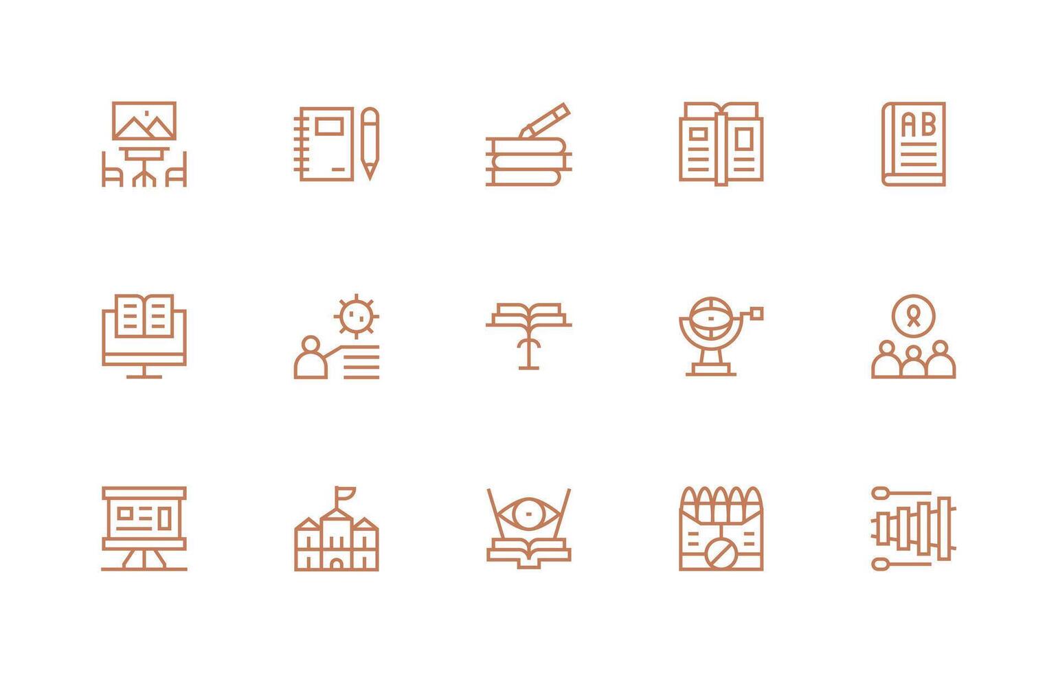 15 regular línea íconos para aprendizaje gráficos flexible icono sistema para web interfaces vector