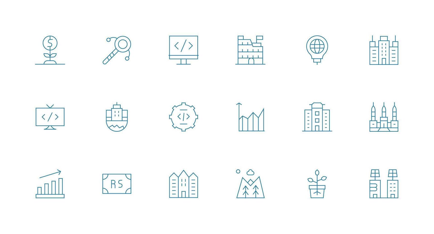 mínimo línea estilo desarrollo íconos con 18 vectores completamente editable icono conjunto para web
