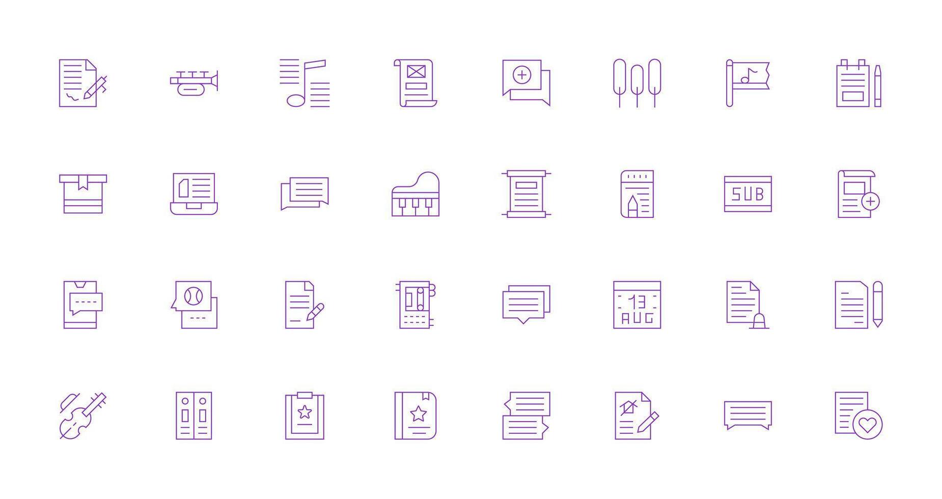 Delgado línea estilo Nota íconos con 32 vectores completamente editable icono conjunto para web