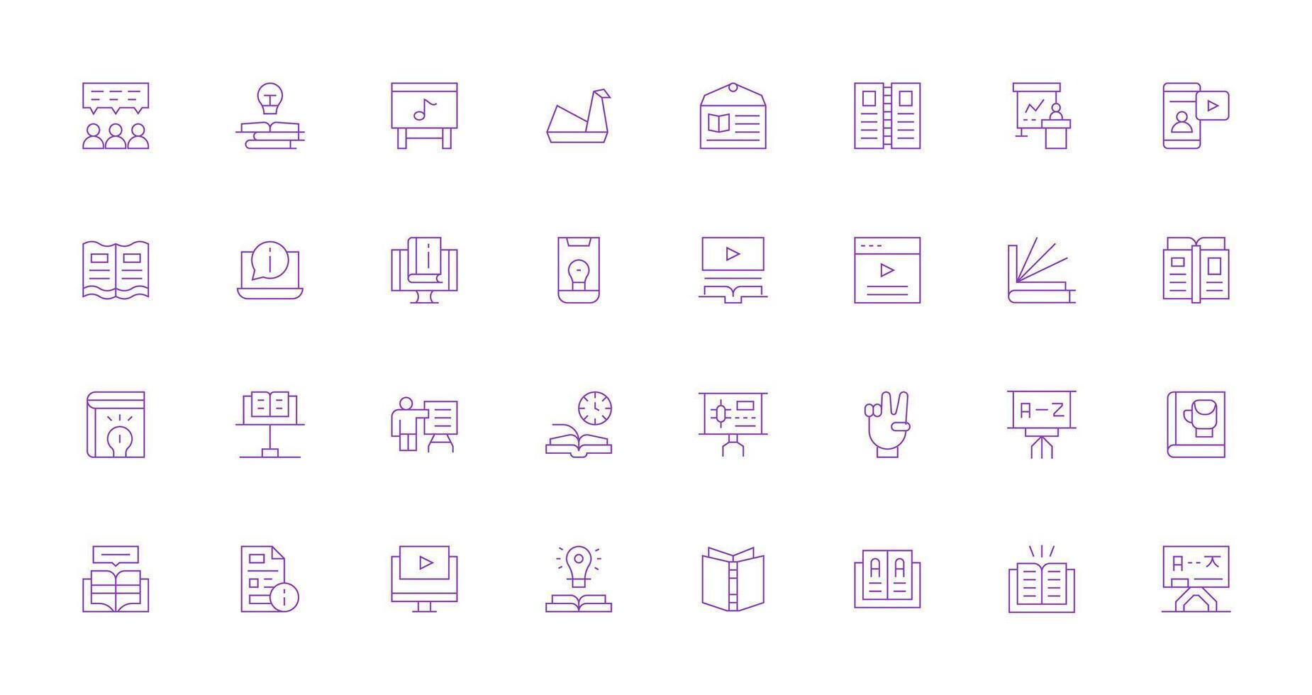 32 Delgado línea estilo íconos desde tutorial colección icono conjunto para web vector