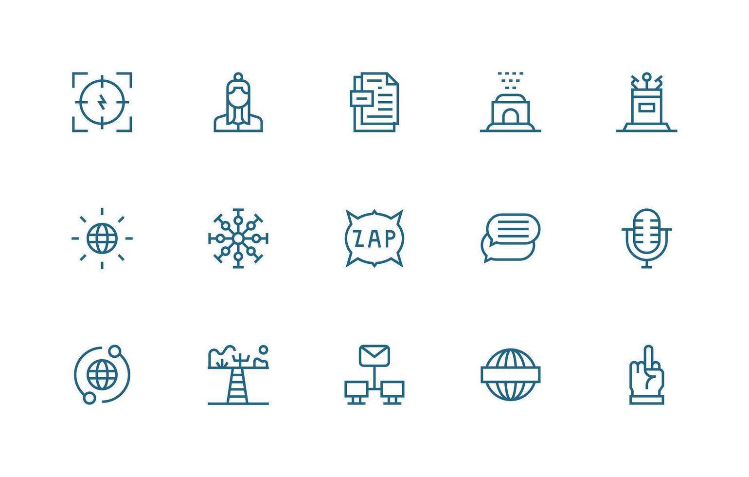 15 comunicación íconos en regular línea estético mínimo icono conjunto para interfaz proyectos vector
