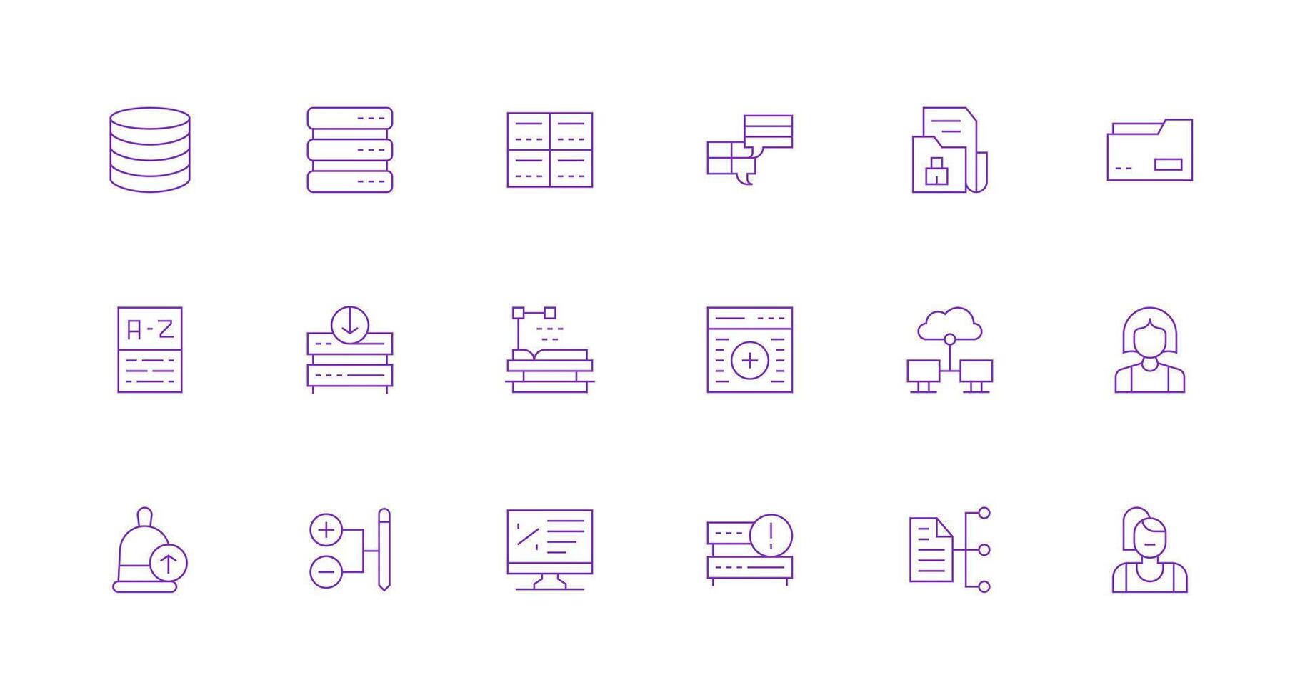 base de datos conjunto con 18 mínimo línea íconos icono conjunto para aplicaciones Vector Gratis