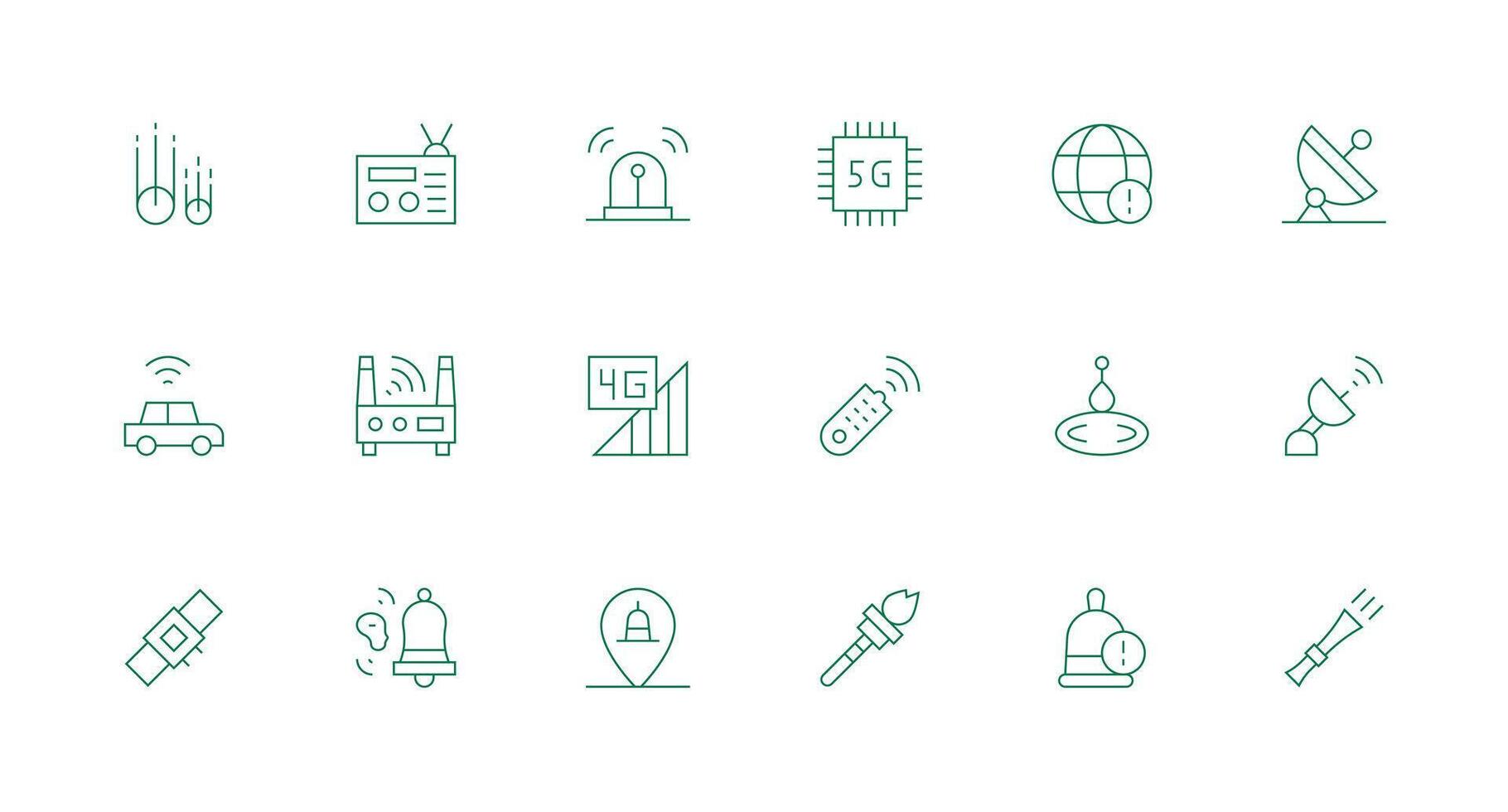 señal presentando 18 íconos en mínimo línea diseño flexible icono sistema para web interfaces vector