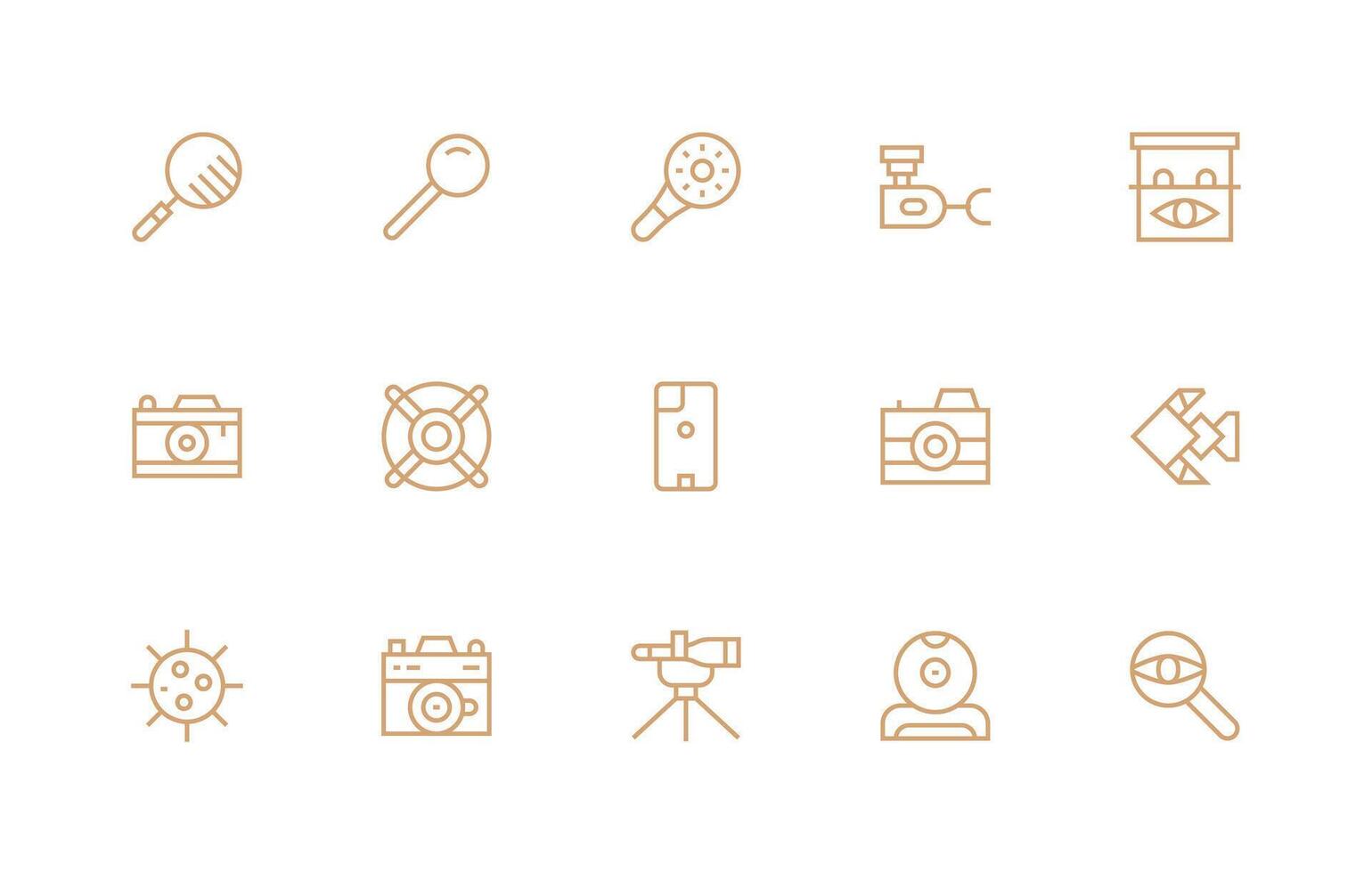 regular línea estilo lente íconos con 15 vectores completamente editable icono conjunto para web
