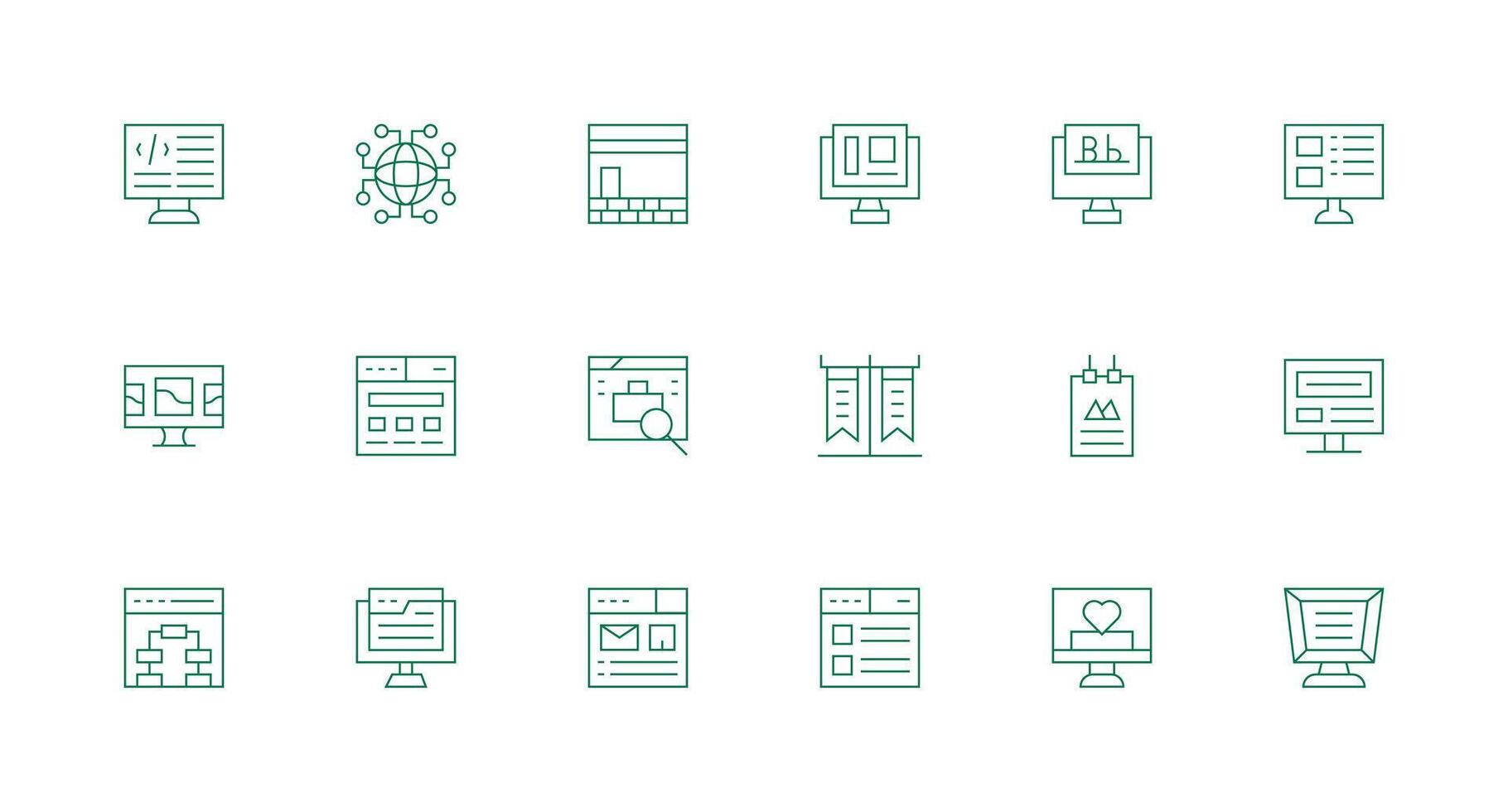 18 mínimo línea estilo íconos desde página web colección rápido acceso íconos para ui desarrollo vector