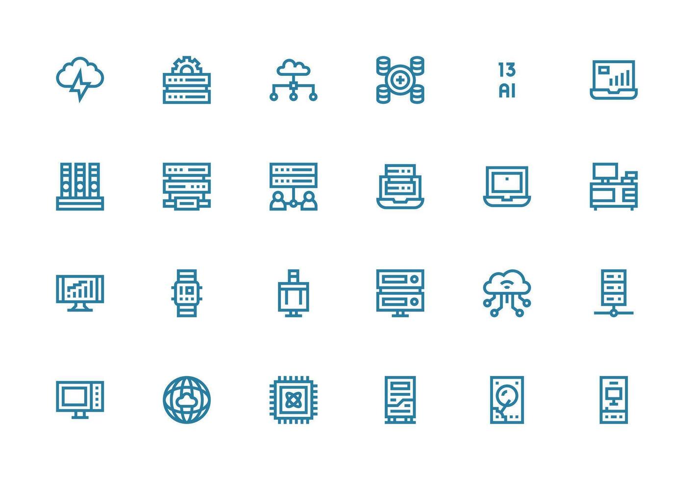 24 íconos para informática en grueso línea línea formato completamente editable icono conjunto para web vector