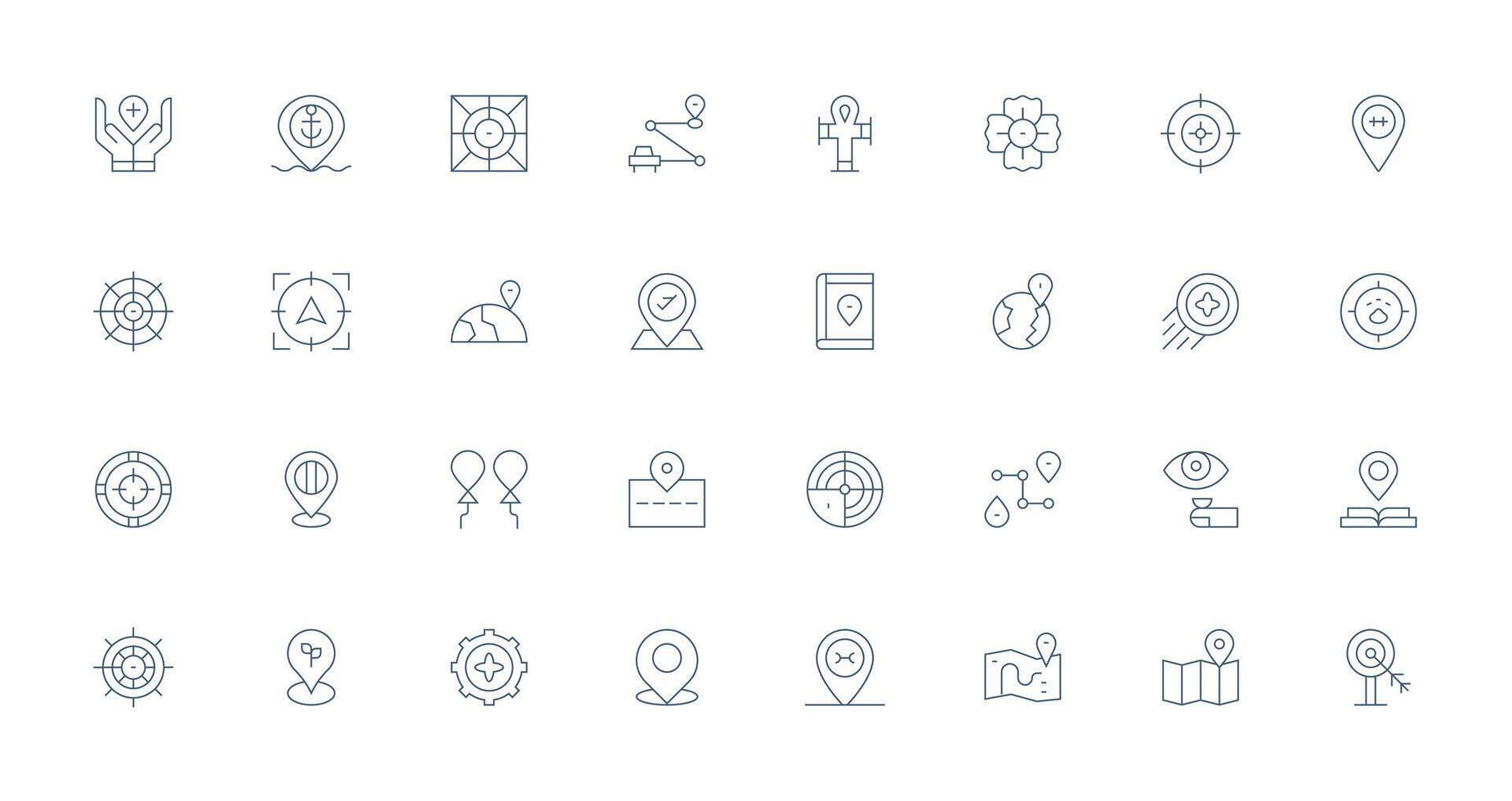 Delgado línea estilo determinar con precisión íconos con 32 vectores limpiar icono colección para web utilizar