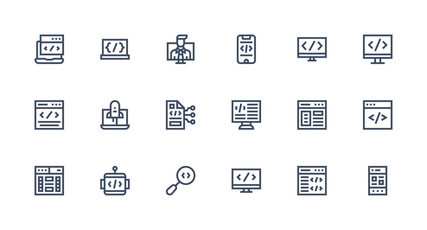 codificación icono conjunto con 18 fuerte carrera línea gráficos aplicación icono paquete vector