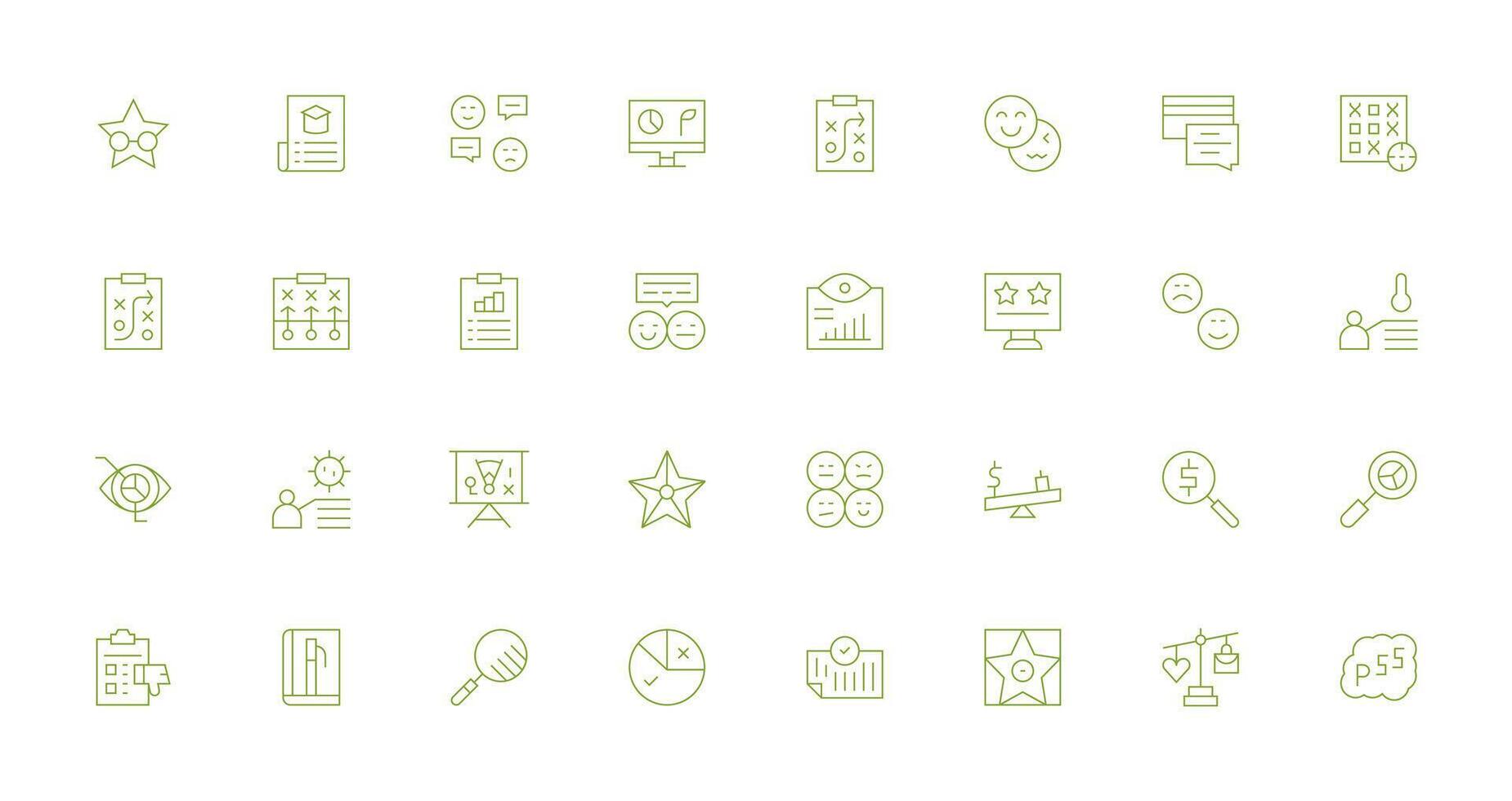 evaluación conjunto con 32 Delgado línea íconos flexible icono sistema para web interfaces vector