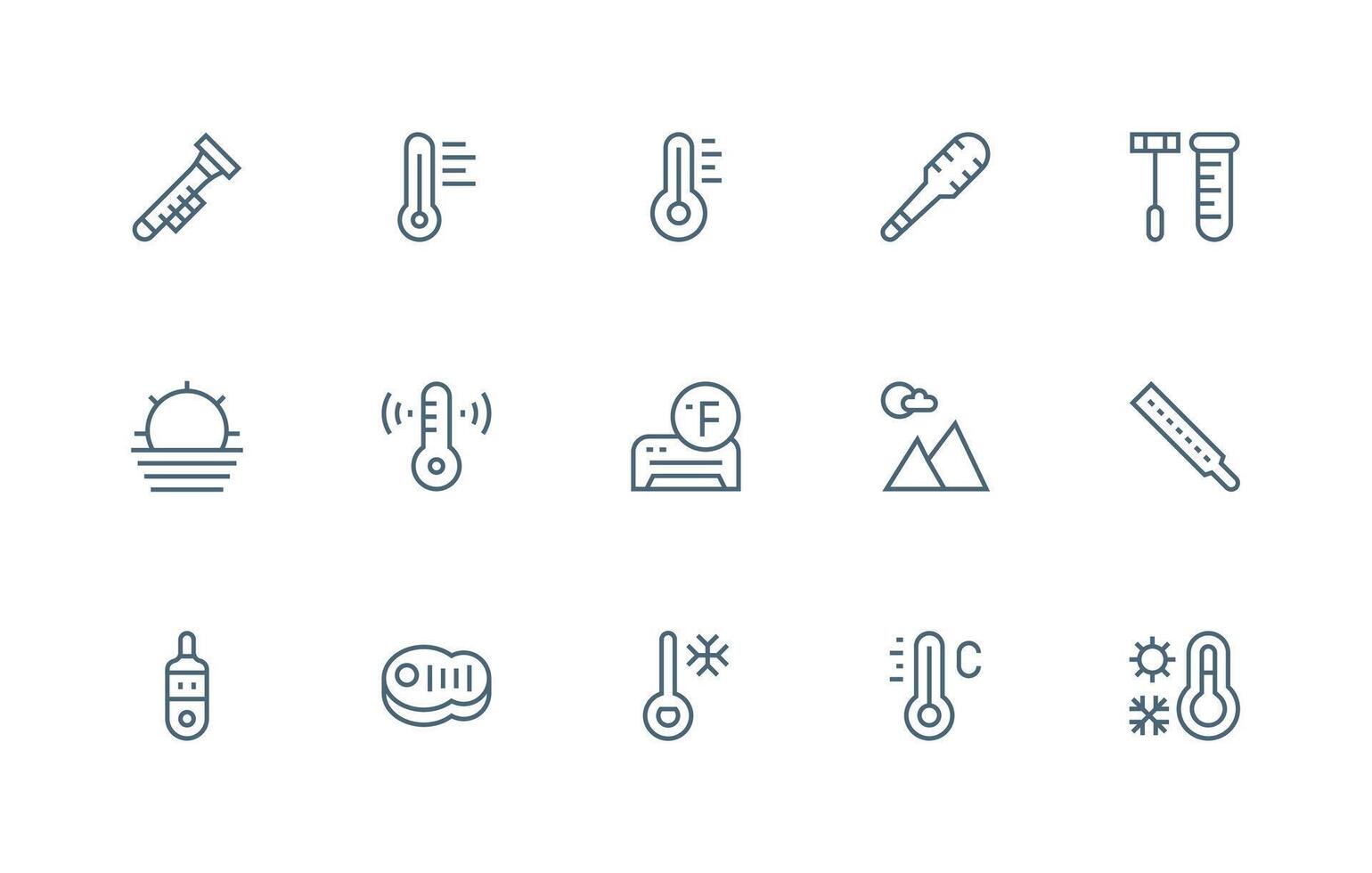 regular línea estilo termómetro íconos con 15 vectores de múltiples fines icono conjunto