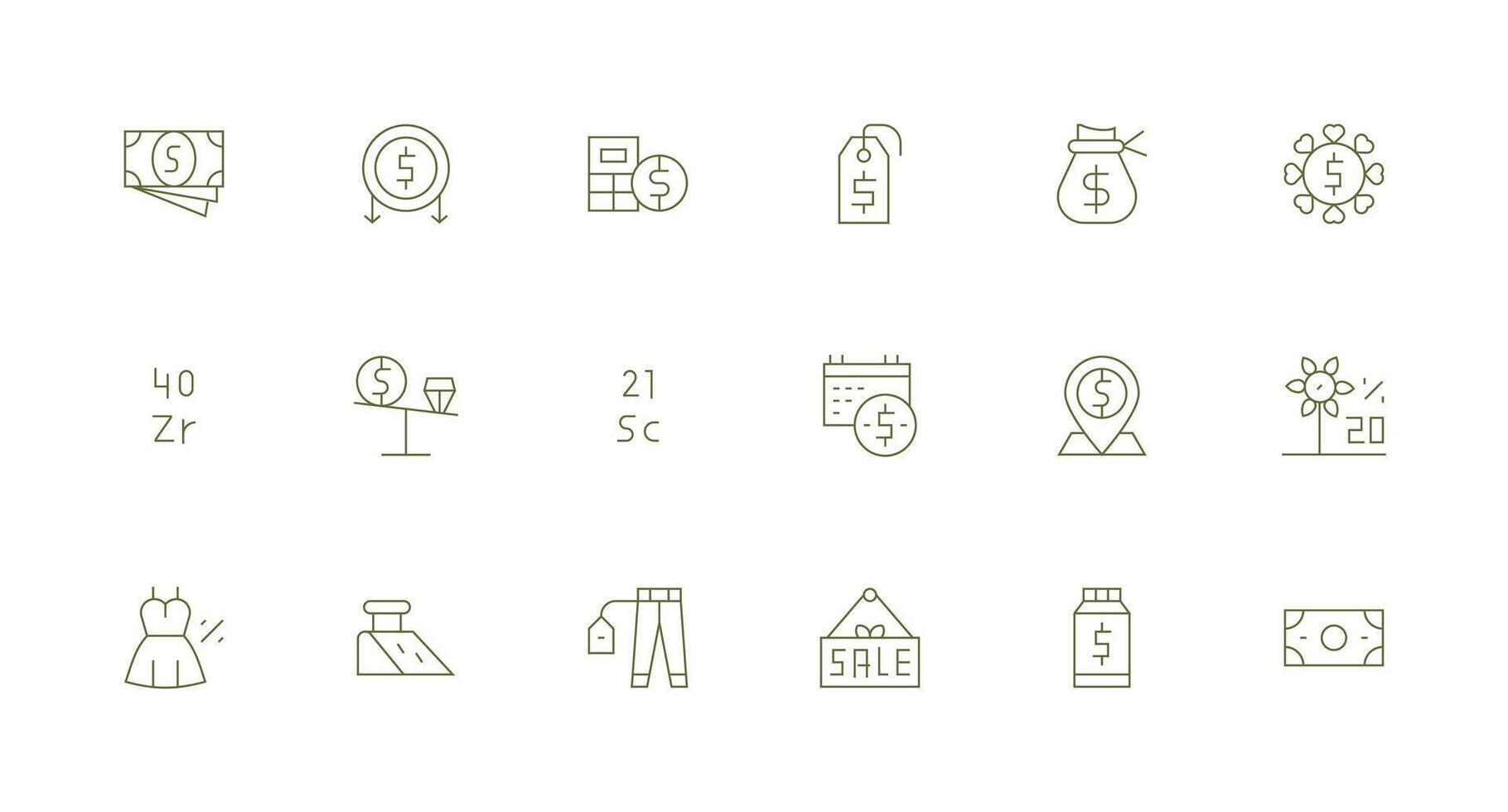 mínimo línea íconos desde precio conjunto con 18 vectores ui icono conjunto