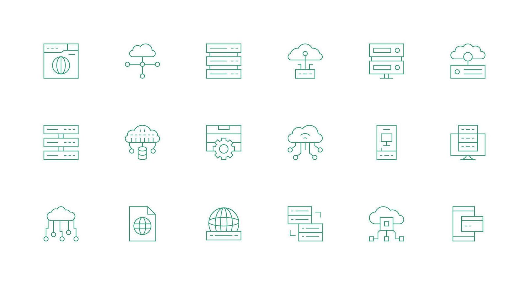 mínimo línea íconos desde hospedaje conjunto con 18 vectores limpiar icono colección para web utilizar Vector Gratis