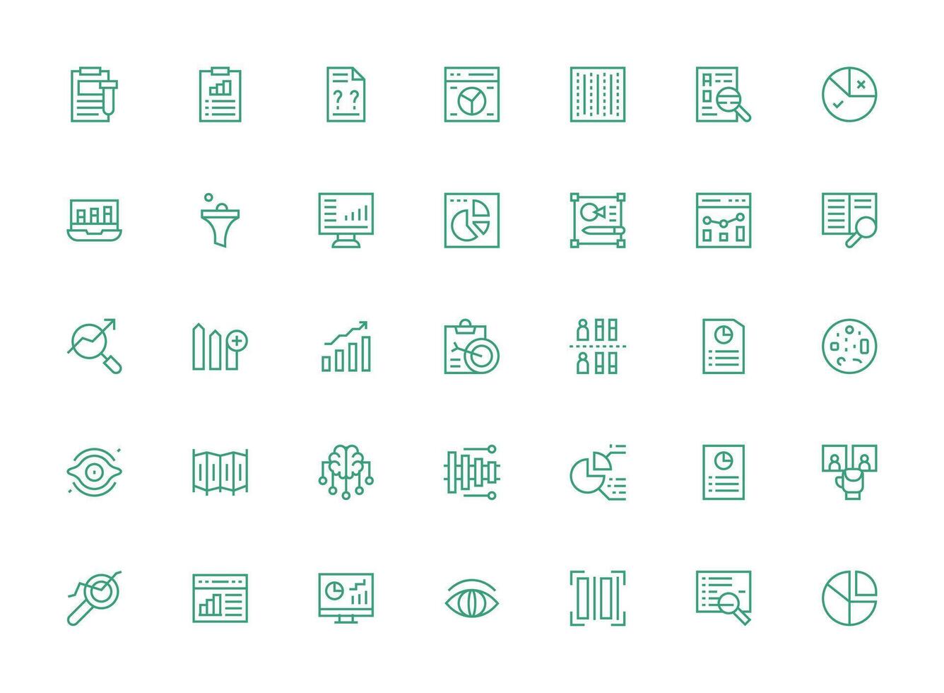 regular limpiar línea estilo datos análisis íconos con 35 vectores ui y ux enfocado icono colección