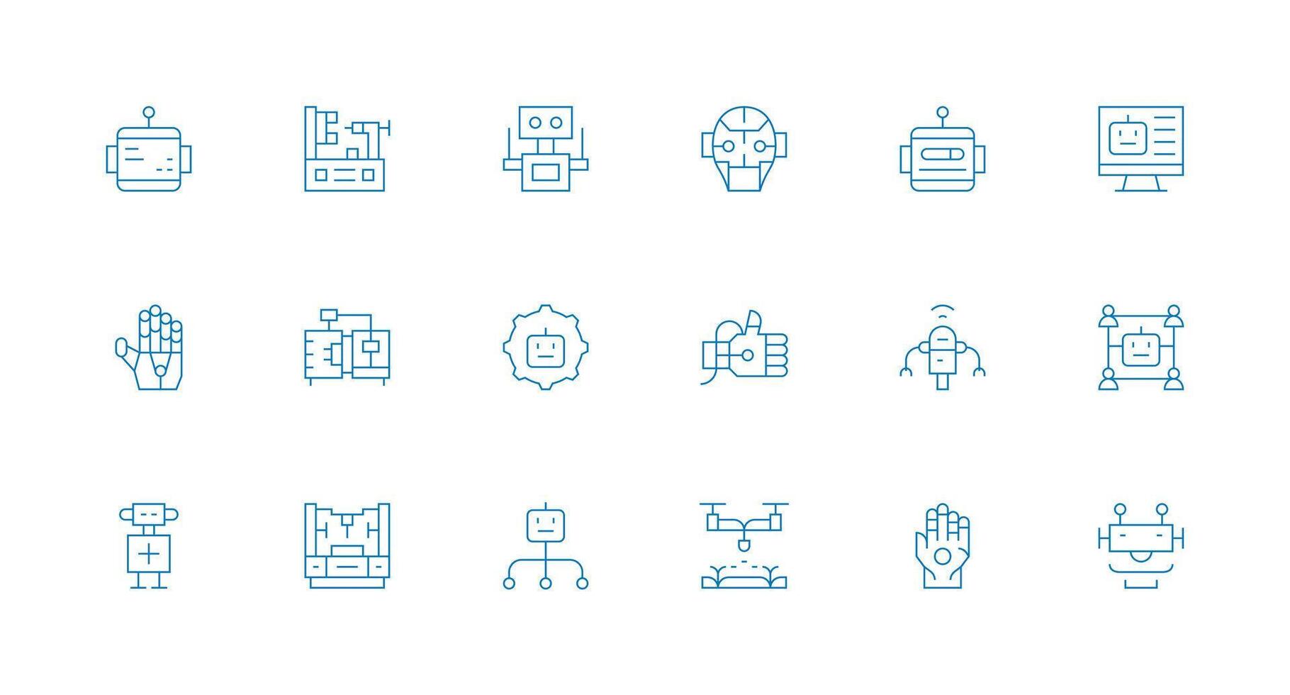 robótica conjunto con 18 mínimo línea íconos multi-estilo icono colección vector