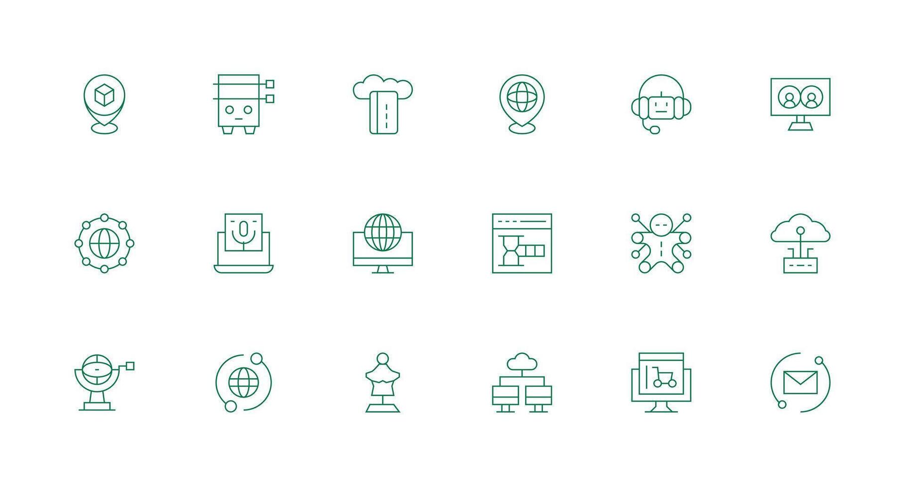 18 mínimo línea íconos para virtual gráficos ui y ux enfocado icono colección vector
