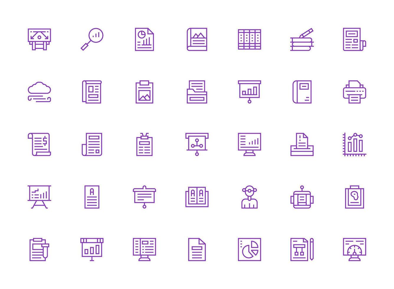 reporte diseño íconos presentando 35 en regular limpiar línea estilo escalable íconos para multiplataforma interfaces vector