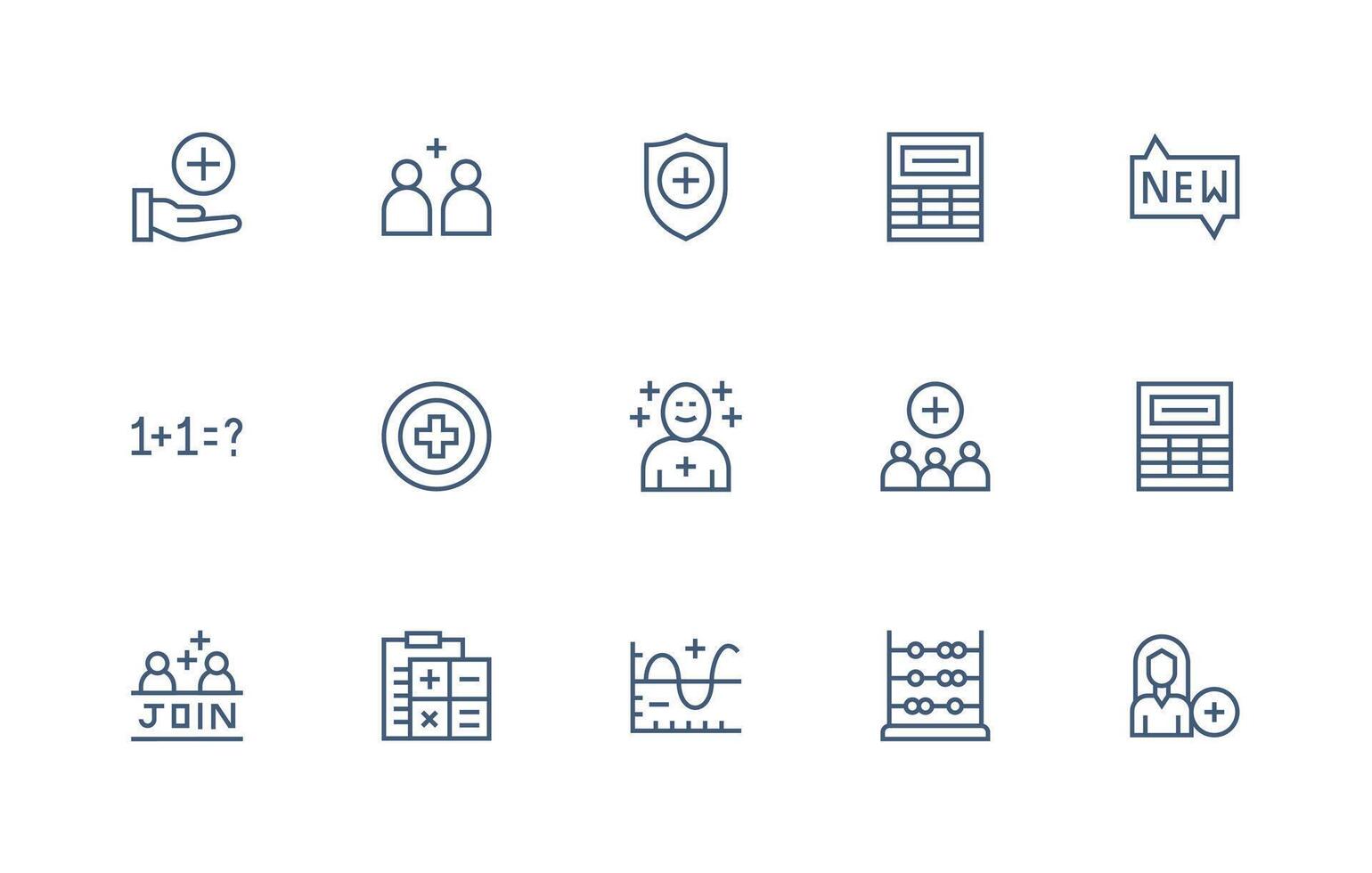 adición icono conjunto con 15 regular línea gráficos claro y conciso icono conjunto colección vector