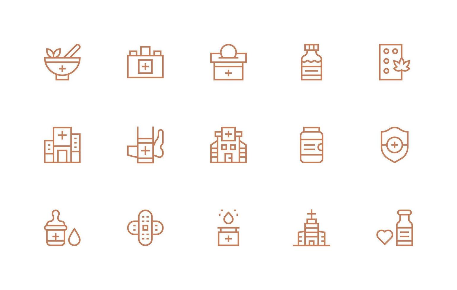 farmacia conjunto con 15 regular línea íconos mínimo icono conjunto para interfaz proyectos vector