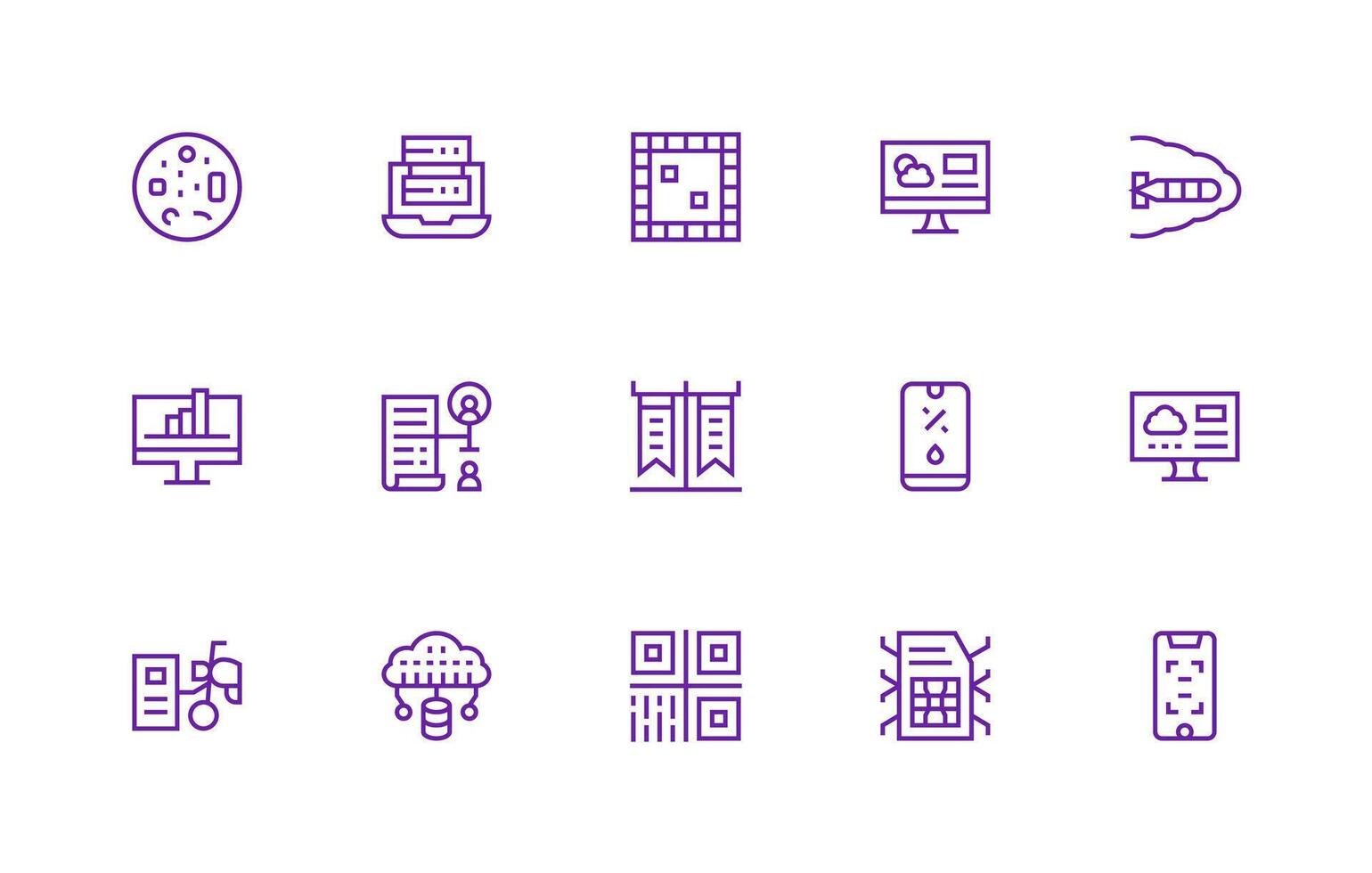 15 regular línea diseños para digital datos íconos mínimo icono conjunto para interfaz proyectos vector