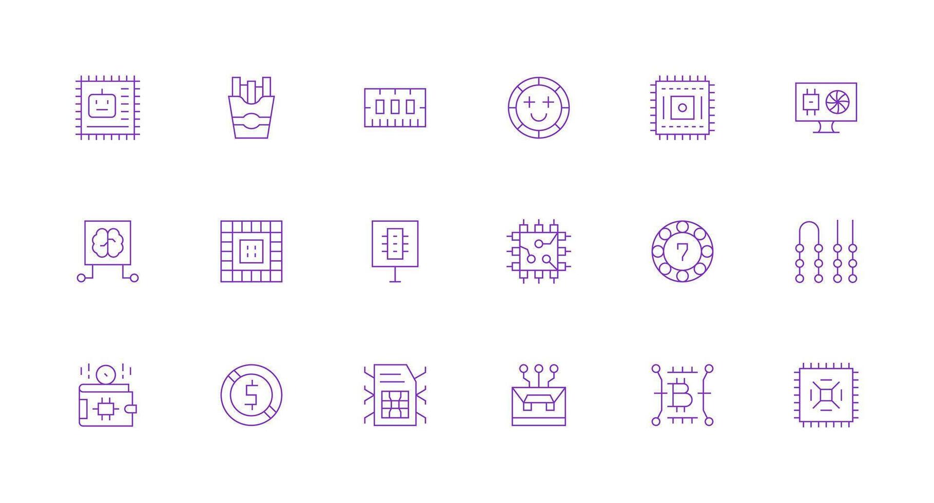 chip icono colección con 18 mínimo línea diseños flexible icono sistema para web interfaces vector