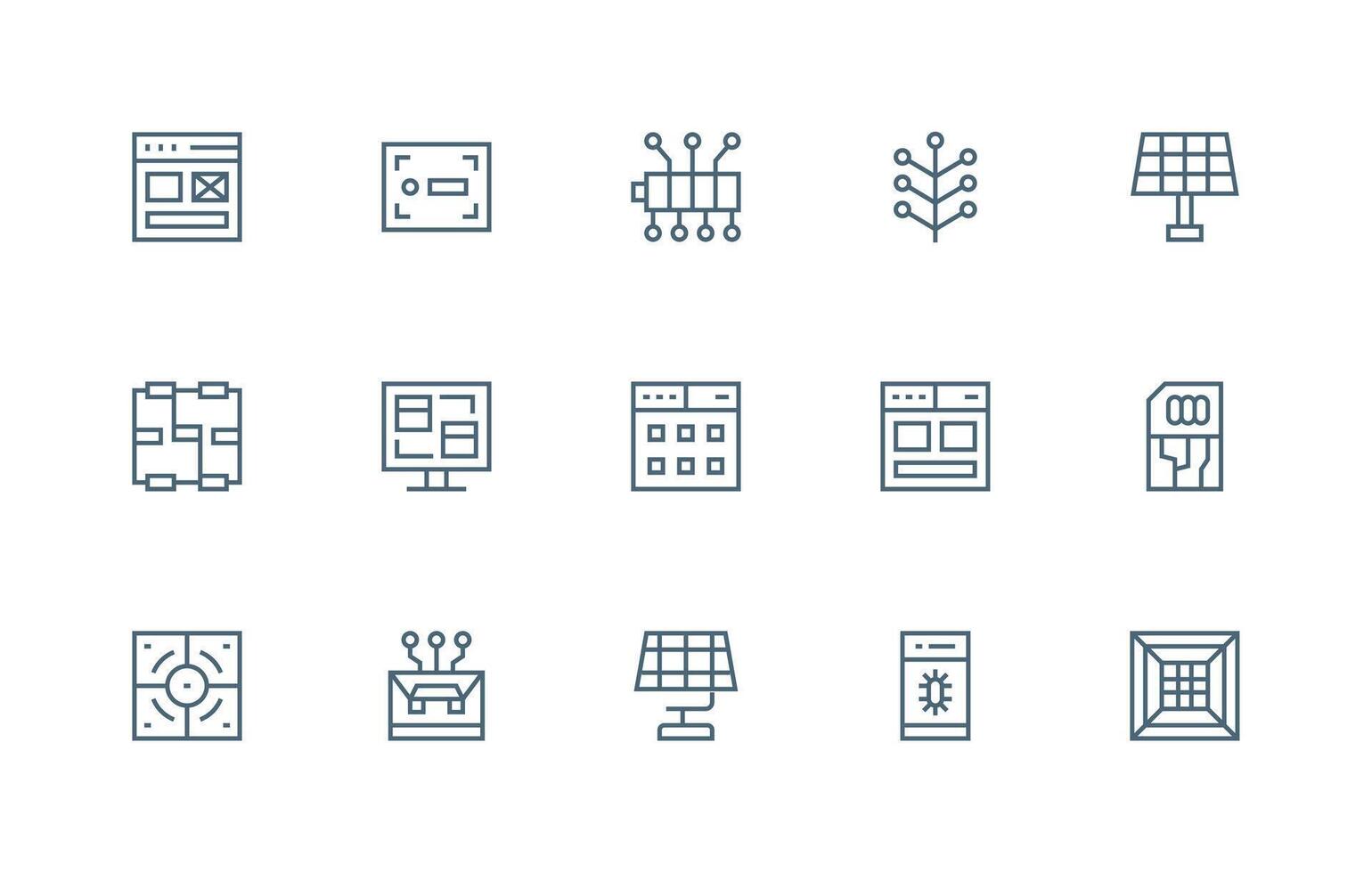 módulo visual paquete conteniendo 15 regular línea íconos limpiar icono colección para web utilizar vector