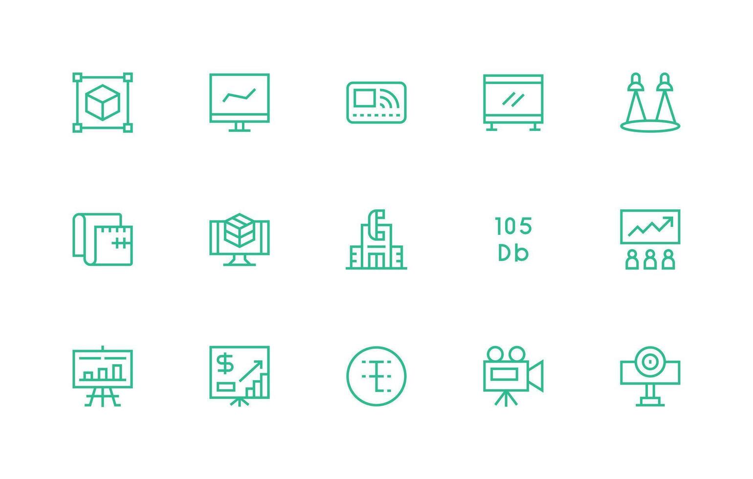 15 regular línea estilo íconos desde proyección colección línea icono colección vector
