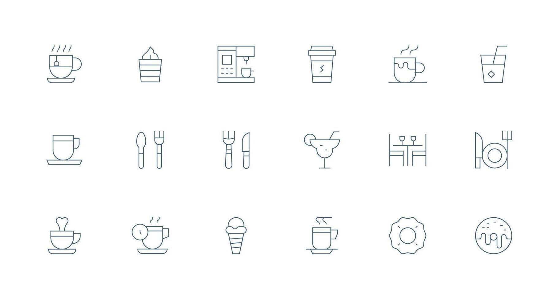 café icono icono conjunto con 18 mínimo línea gráficos flexible icono sistema para web interfaces vector