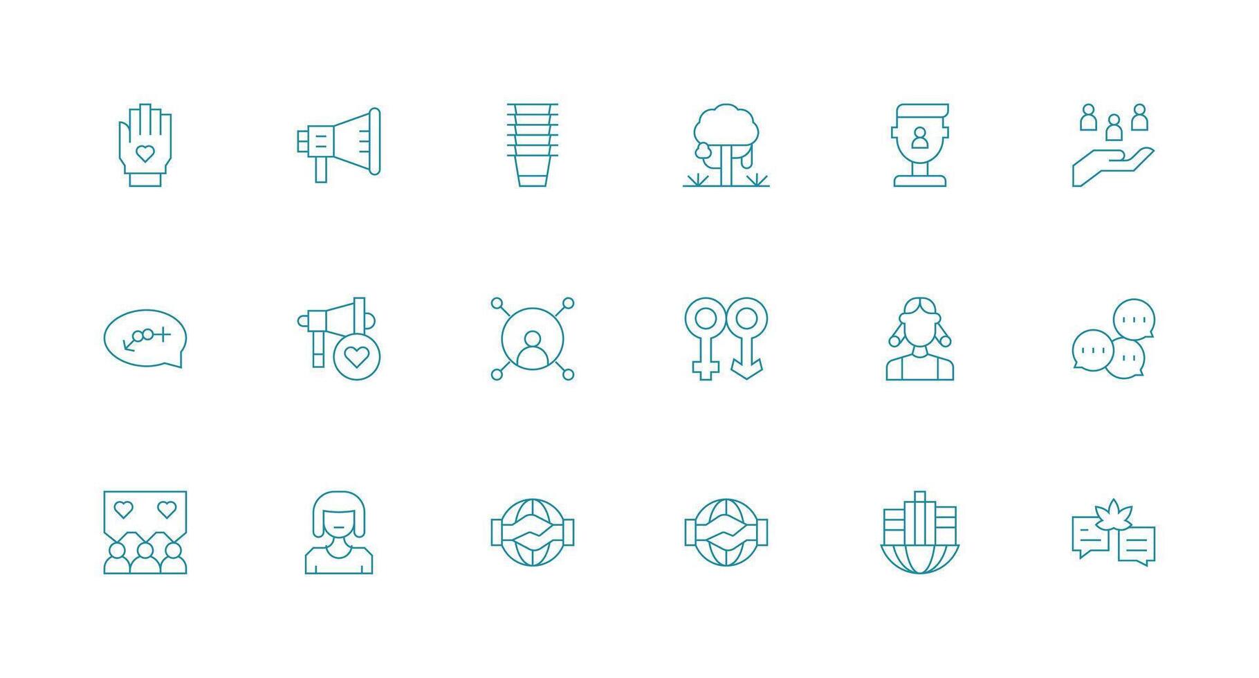 comunidad presentando 18 íconos en mínimo línea diseño flexible icono sistema para web interfaces vector