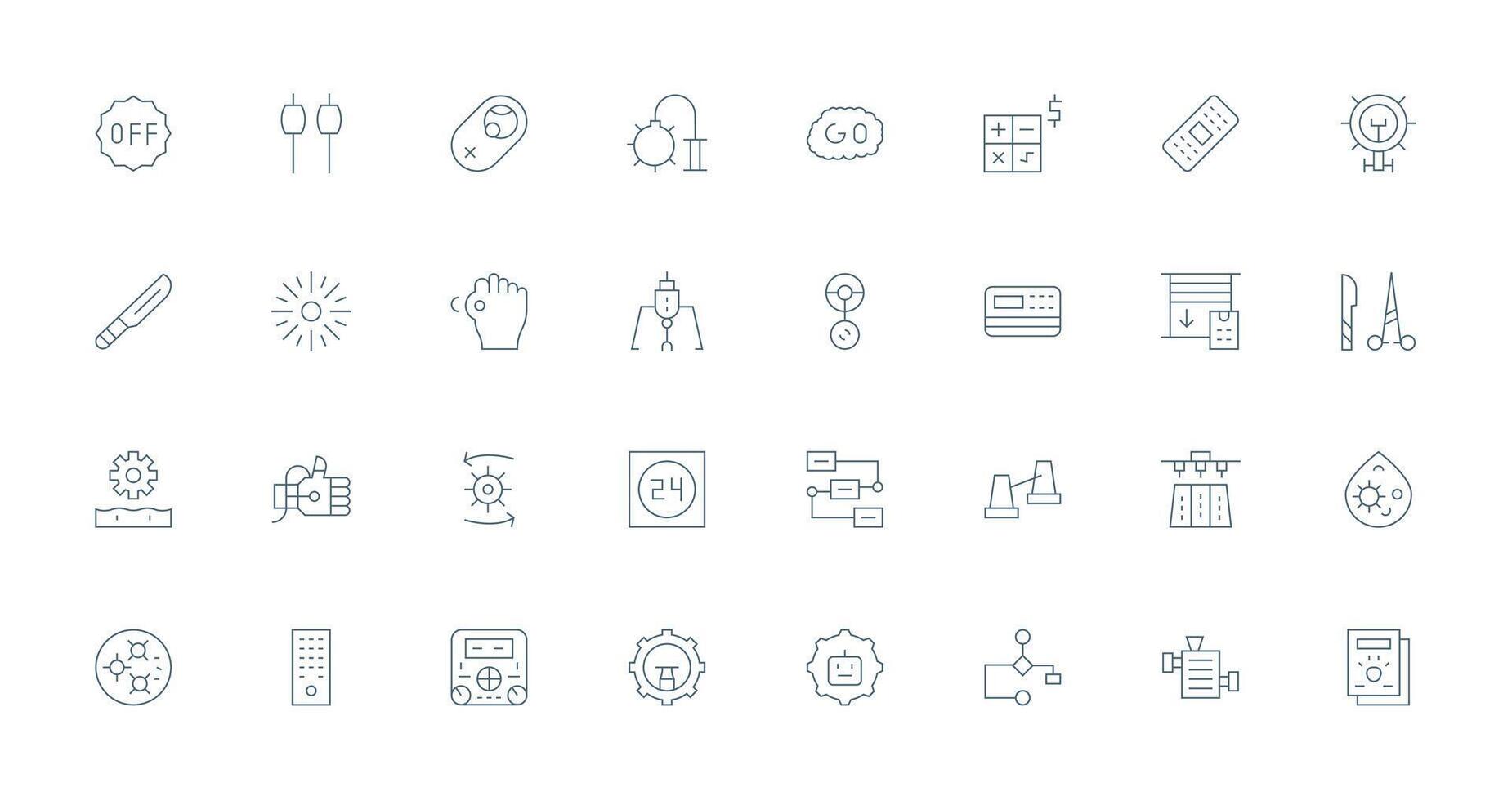 32 operación íconos en Delgado línea estético flexible icono sistema para web interfaces vector