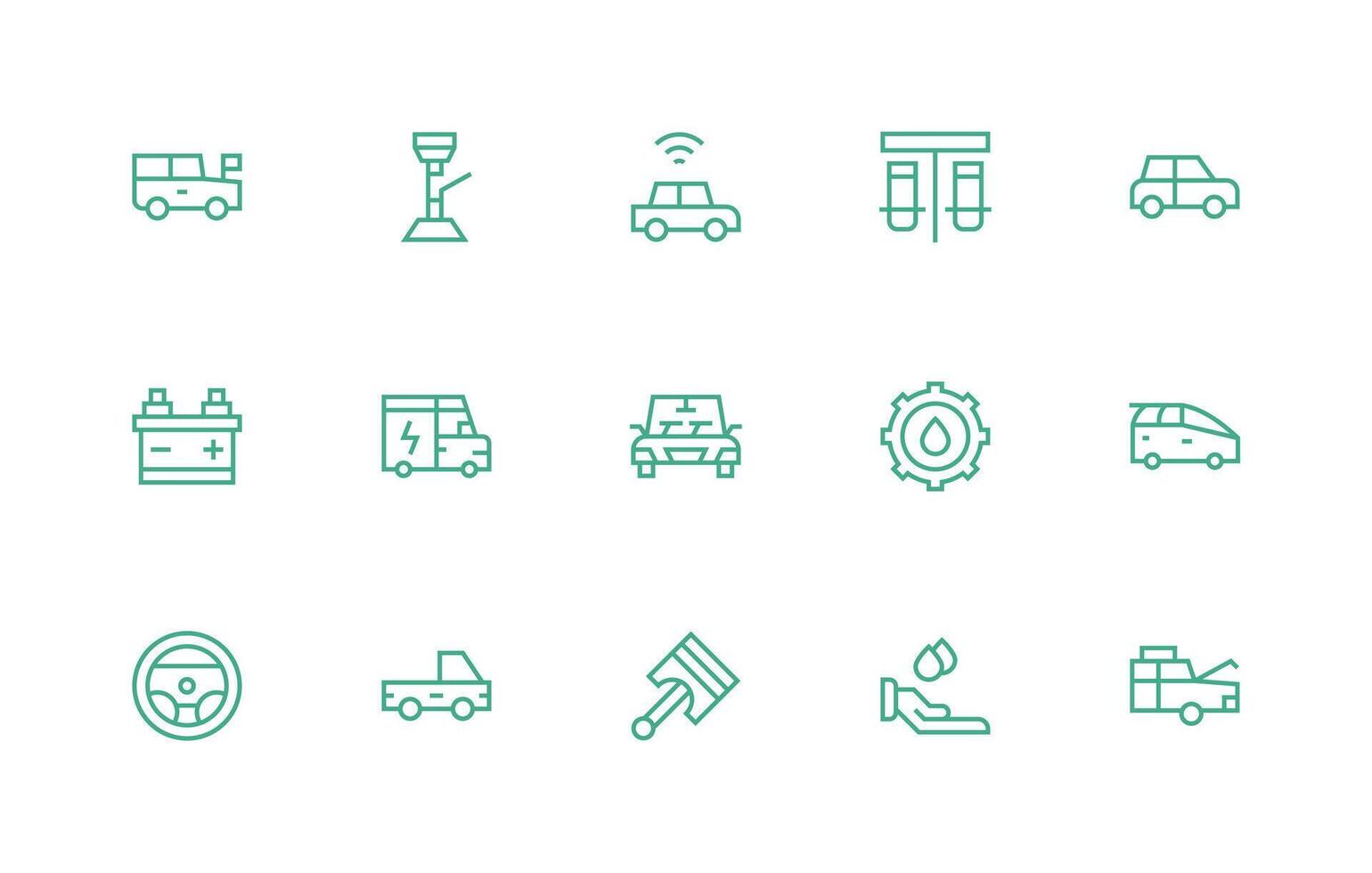 automóvil icono conjunto con 15 regular línea gráficos multi-estilo icono colección vector