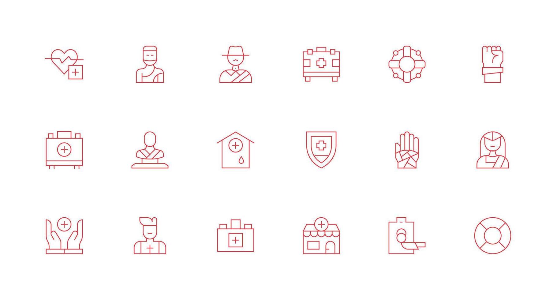 primero ayuda presentando 18 íconos en mínimo línea diseño completamente editable icono conjunto para web Vector Gratis