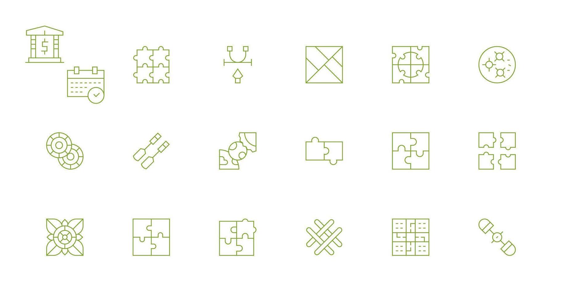 enclavamiento presentando 18 íconos en mínimo línea diseño píxel Perfecto icono conjunto vector