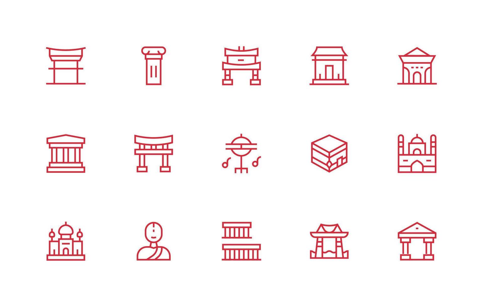 templo icono conjunto con 15 regular línea gráficos aplicación icono paquete Vector Gratis