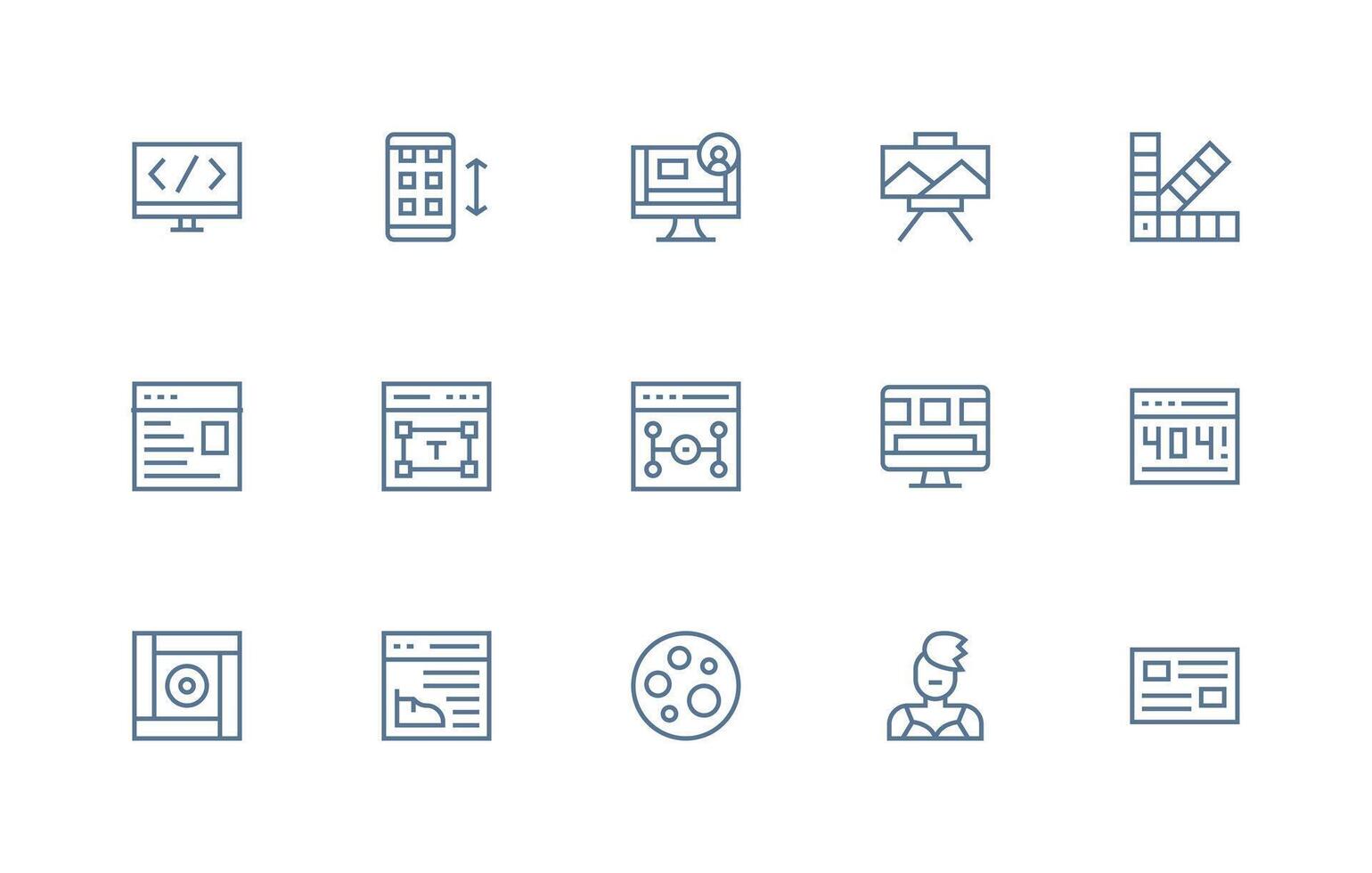 web diseño icono colección con 15 regular línea diseños completamente editable icono conjunto para web vector
