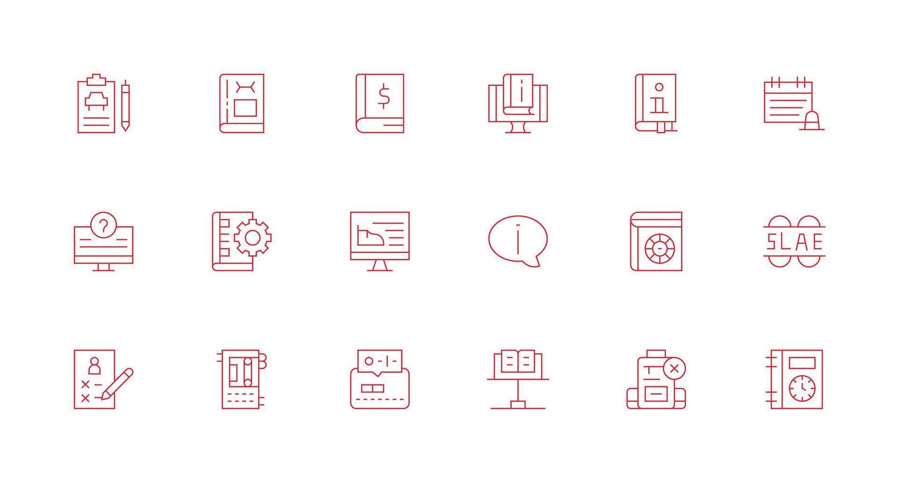 mínimo línea íconos desde documentación conjunto con 18 vectores aplicación icono paquete