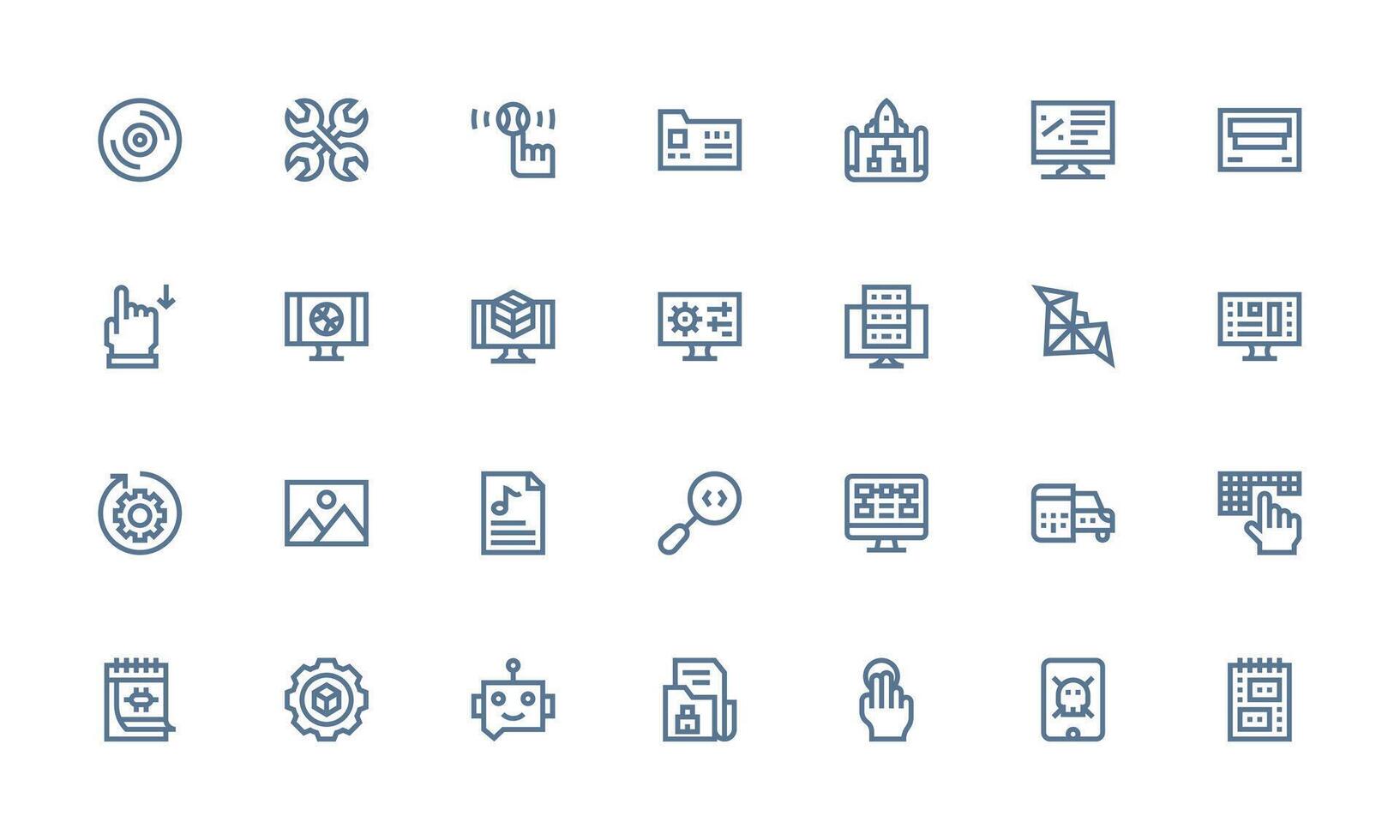 28 negrita línea estilo íconos desde software colección completamente editable icono conjunto para web vector