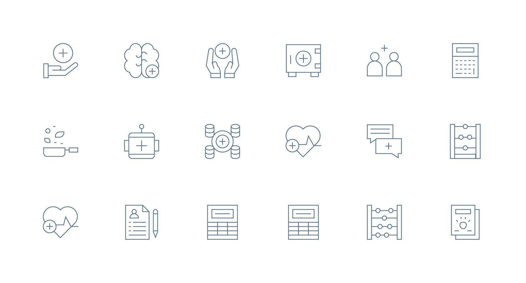 18 íconos para añadir en mínimo línea formato limpiar icono colección para web utilizar Vector Gratis