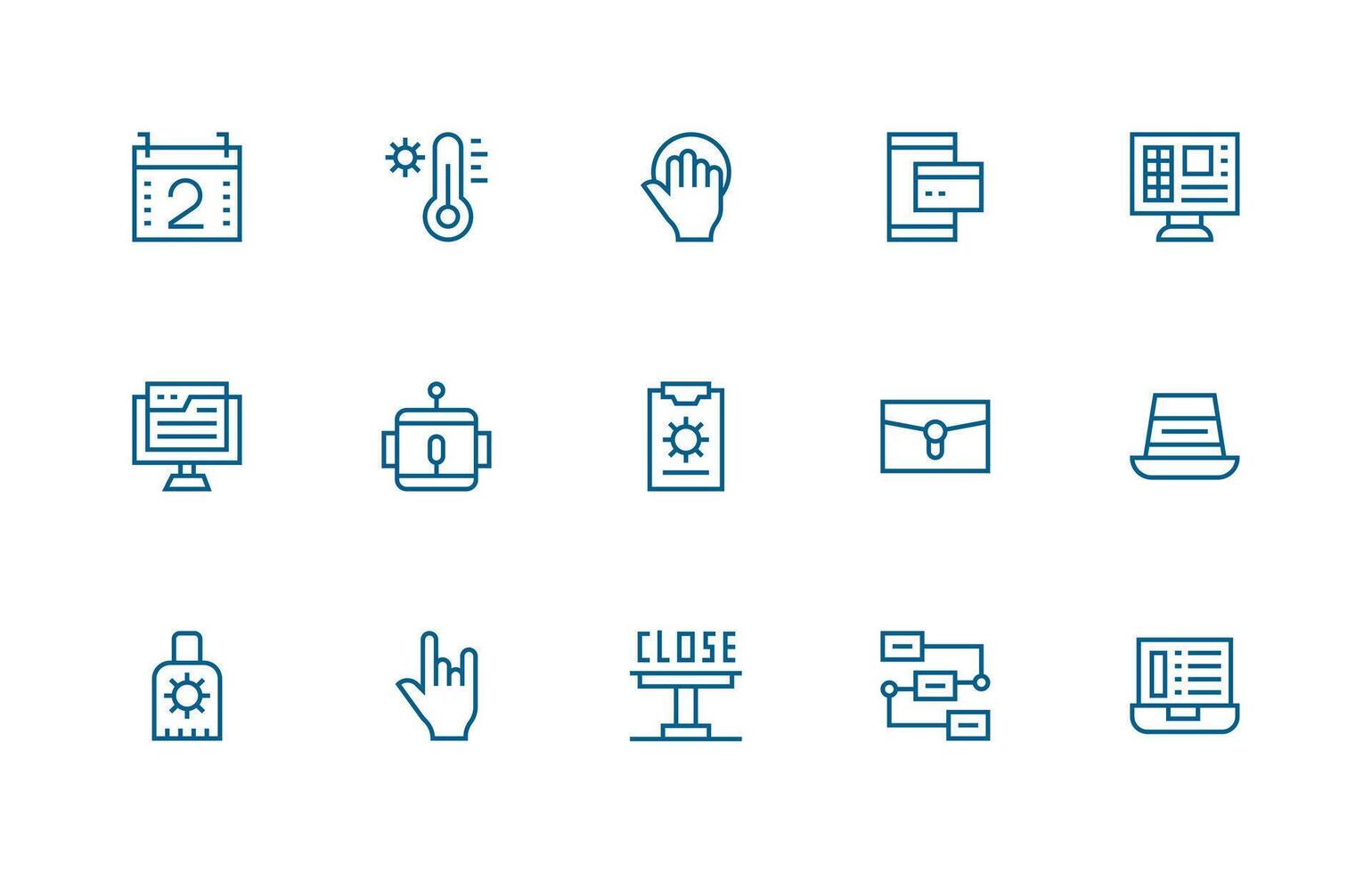 regular línea estilo programa íconos con 15 vectores diseño icono colección